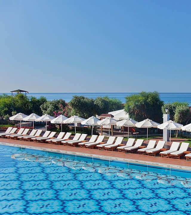 Enjoy the sun, sea, and sand at our hotel which is located on one of the most beautiful blue-flagged beaches of the Mediterranean.