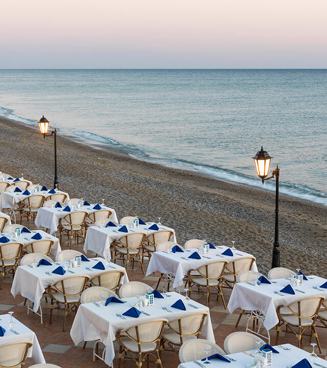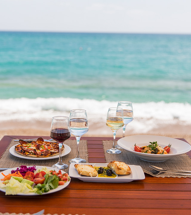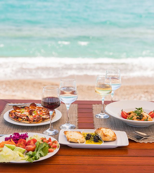 ​At the Beach Restaurant, you can enjoy a late breakfast in the morning, a variety of pizzas and pastas at lunchtime, and a romantic dinner by the sea accompanied by a sunset view in the evenings.